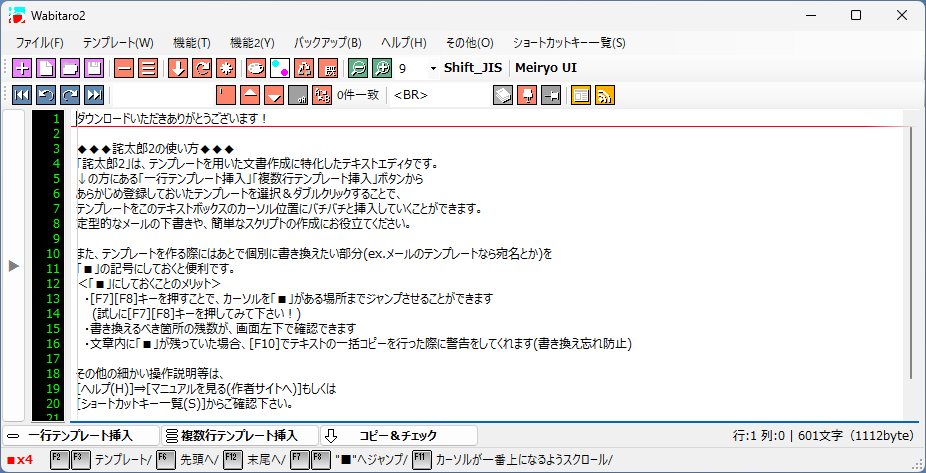 ・名称変更:「サブウィンドウ(フレーズ)」→「テンプレート(一行)」、「サブウィンドウ(テンプレート)」→「テンプレート(複数行)」